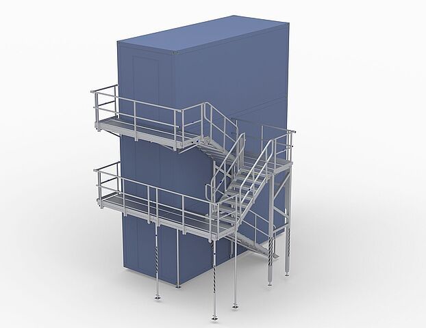Våra containertrappor är därför idealiska för tuffa byggarbeten, speciellt för uthyrning med frekvent montering och demontering.